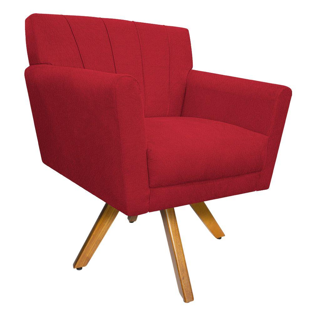 Poltrona Laura Base Giratória de Madeira Suede Vermelho