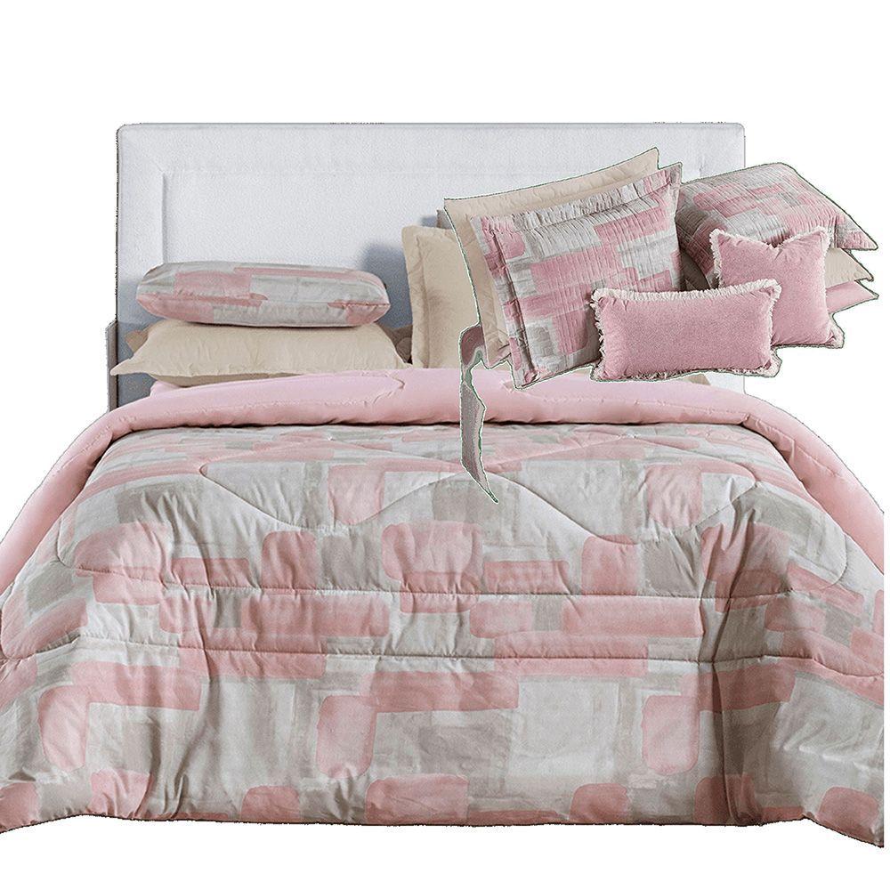 Kit Cobre Leito Sonho Queen 08 Peças Barato - Rosê - Cinza