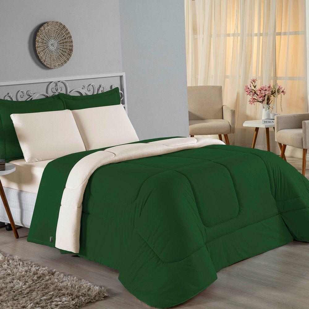 Edredom Solteiro Nobre 1 Peça Dupla Face 1,60m X 2,40m Malha 100% Algodão - Verde-bandeira / Palha