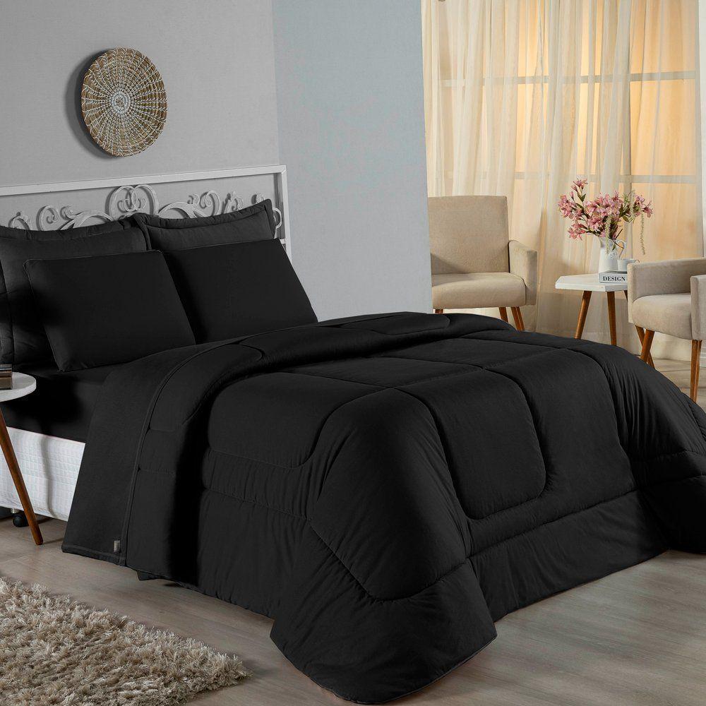 Edredom Queen Nobre 1 Peça Dupla Face 2,20m X 2,40m Malha 100% Algodão - Preto
