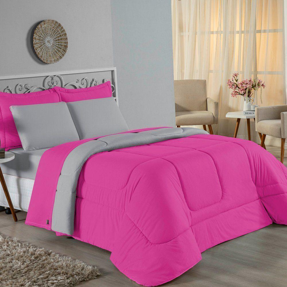 Edredom Queen Nobre 1 Peça Dupla Face 2,20m X 2,40m Malha 100% Algodão - Pink / Cinza