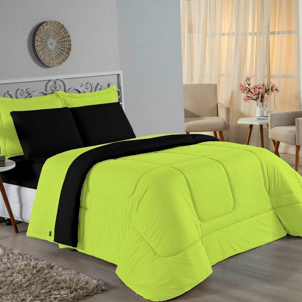 Edredom Queen Nobre 1 Peça Dupla Face 2,20m X 2,40m Malha 100% Algodão - Pistache / Preto