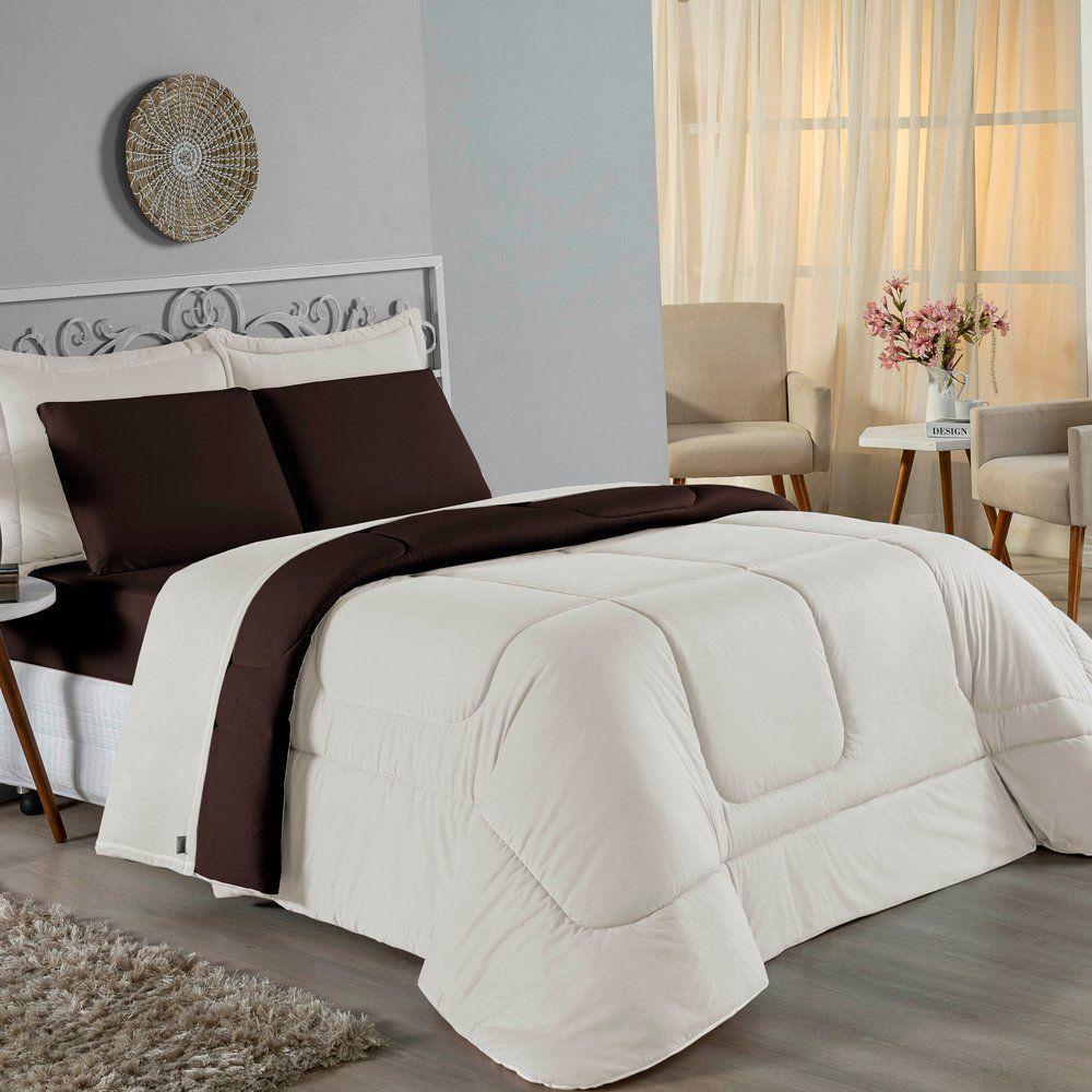 Edredom Queen Nobre 1 Peça Dupla Face 2,20m X 2,40m Malha 100% Algodão - Palha / Marrom