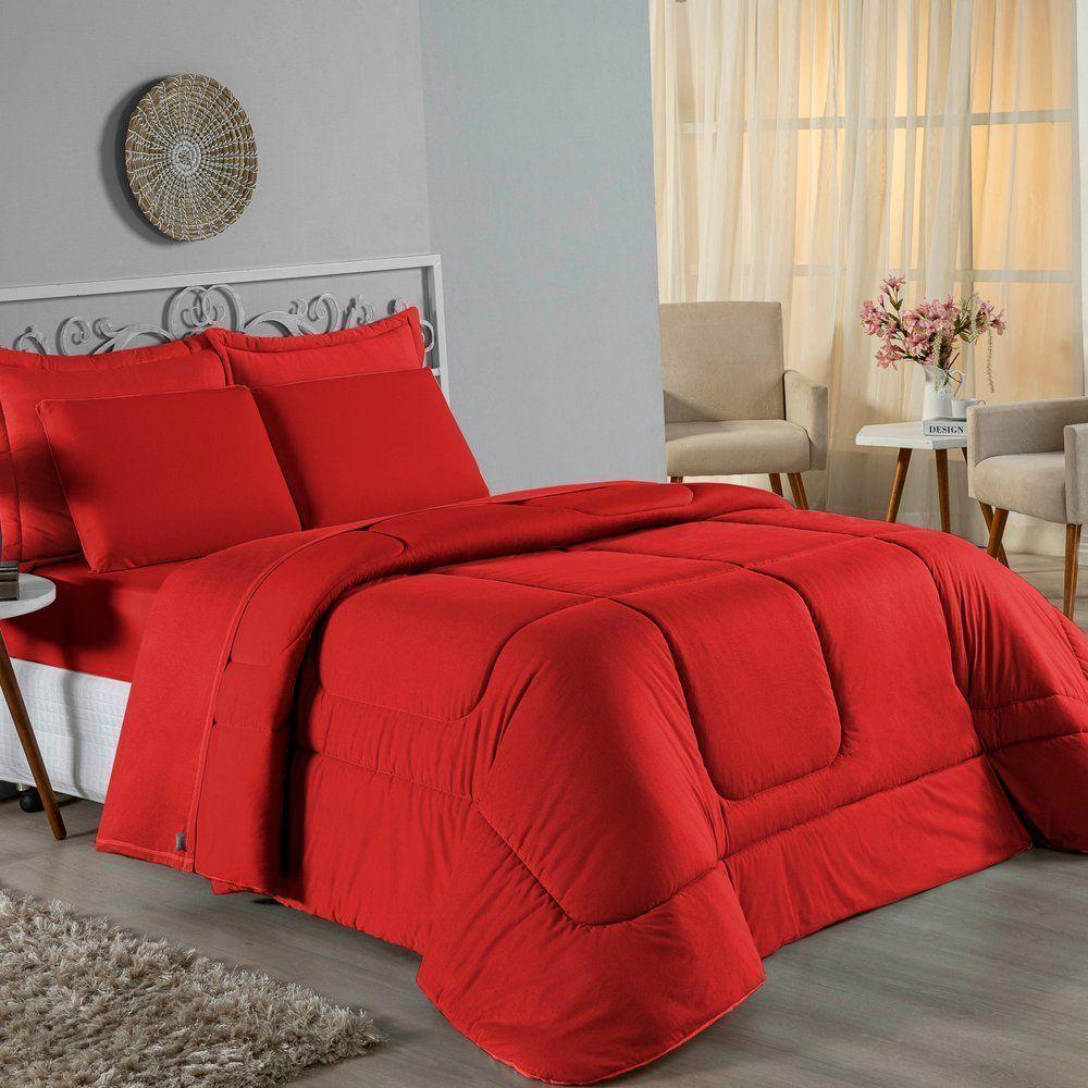 Edredom Queen Nobre 1 Peça Dupla Face 2,20m X 2,40m Malha 100% Algodão - Vermelho