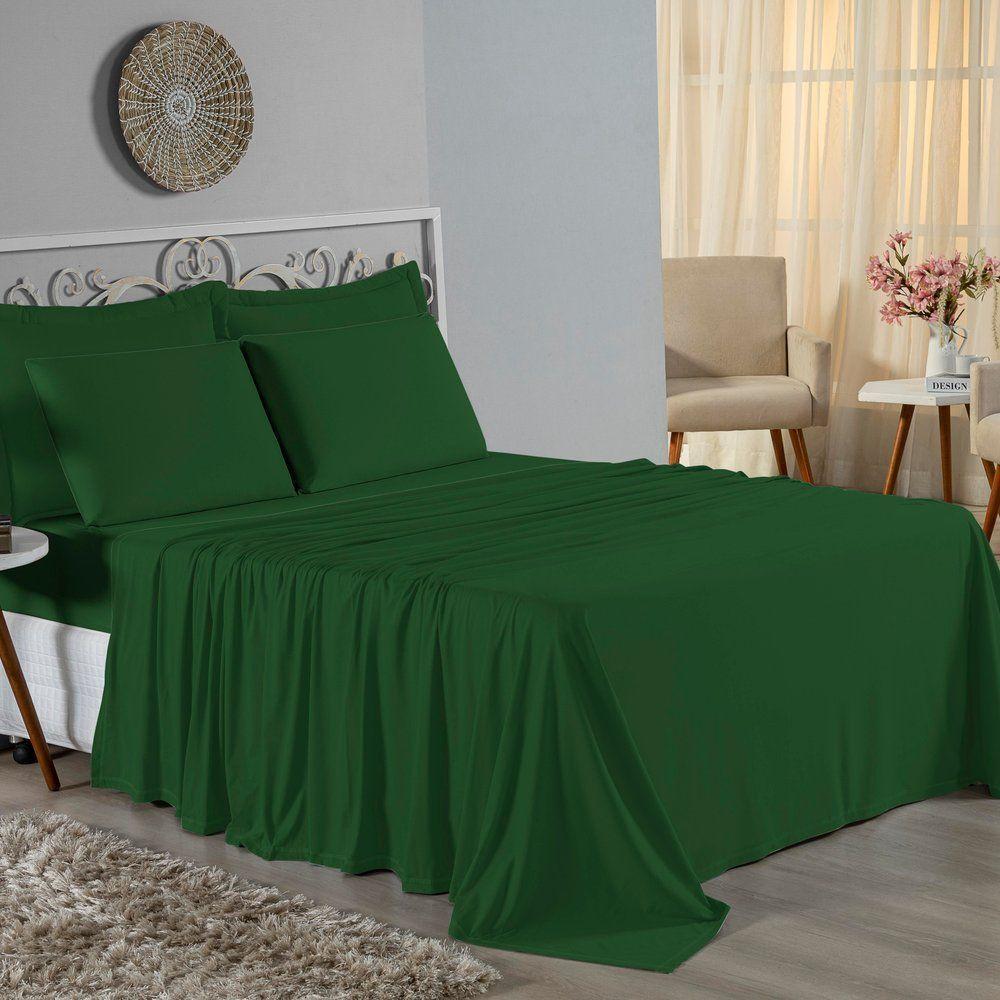 Jogo De Cama Casal Nobre 4 Peças Lençol Com Elástico De 30cm De Altura Malha 100% Algodão - Verde-bandeira