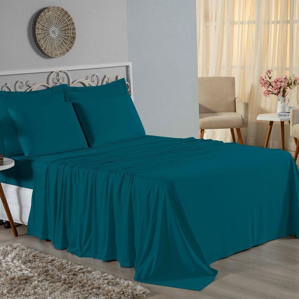 Jogo De Cama Casal Nobre 4 Peças Lençol Com Elástico De 30cm De Altura Malha 100% Algodão - Petróleo