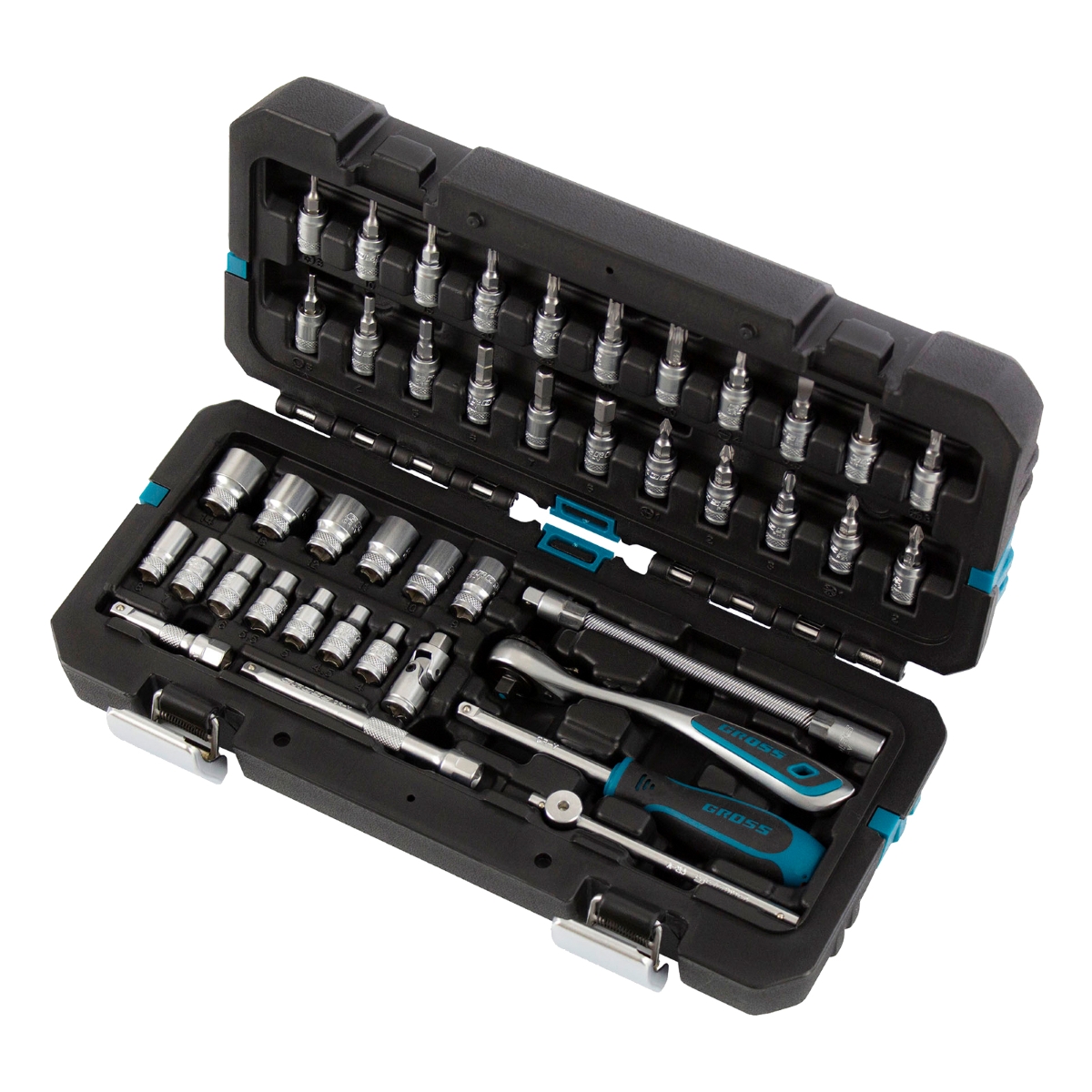 Jogo de Ferramentas 42 Peças 1/4 Gross 1414655 Catraca 120 Dentes Maleta Plástica Aço CrV
