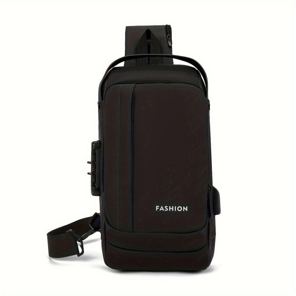 Mochila De Peito Masculina à Prova D'água Com Trava De Código Usb Alta Qualidade Cores:preto