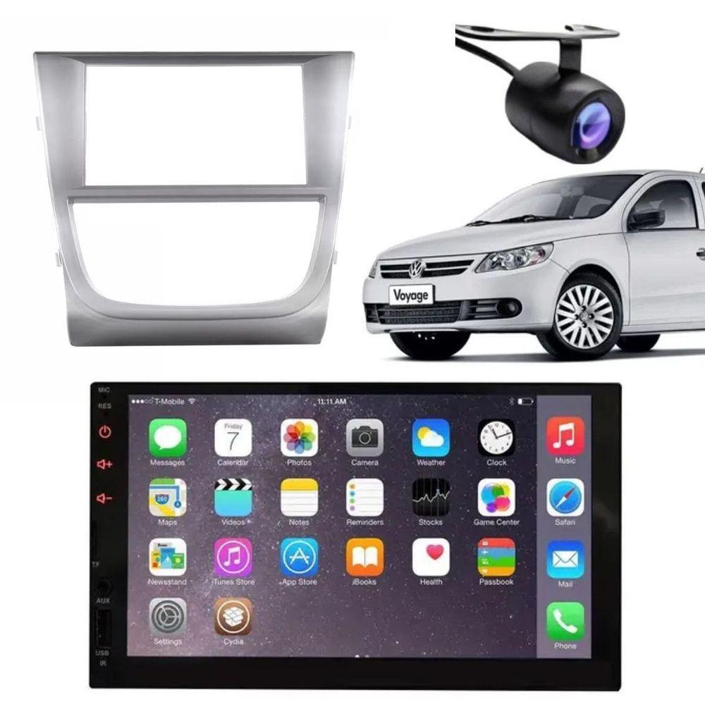 Central Multimídia 2 Din Mp5 Voyage G6 Câmera Moldura Prata