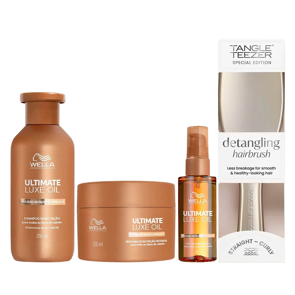 Wella Professionals Ultimate Luxe Oil Kit – Shampoo + Máscara + Óleo Capilar + Escova Tangle Teezer