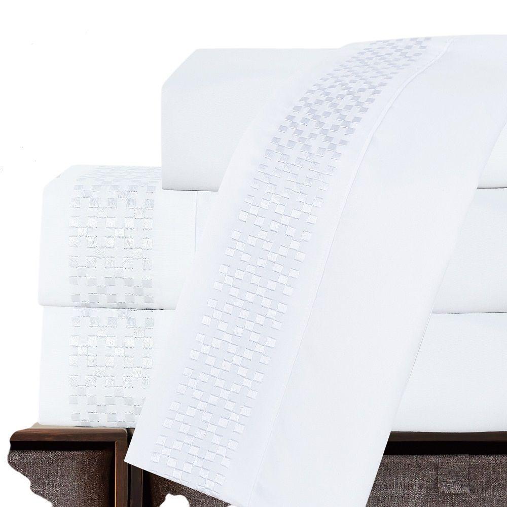 Jogo Lençol Casal Elegance Bordado 4pç 100% Poliéster - Branco