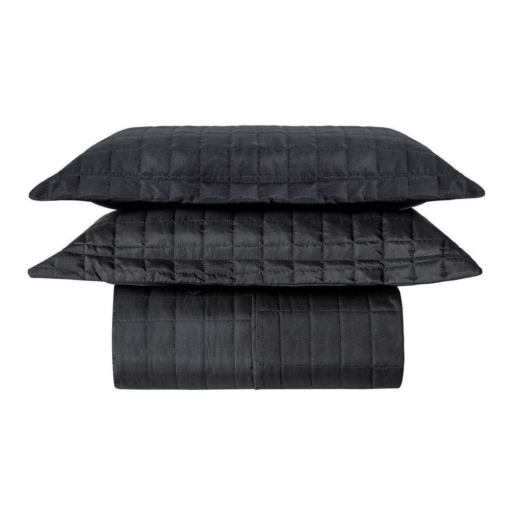 Cobre Leito Colcha King Com 2 Porta Travesseiros Matelassê Percal 300 Fios Basic 100% Poliéster - Preto