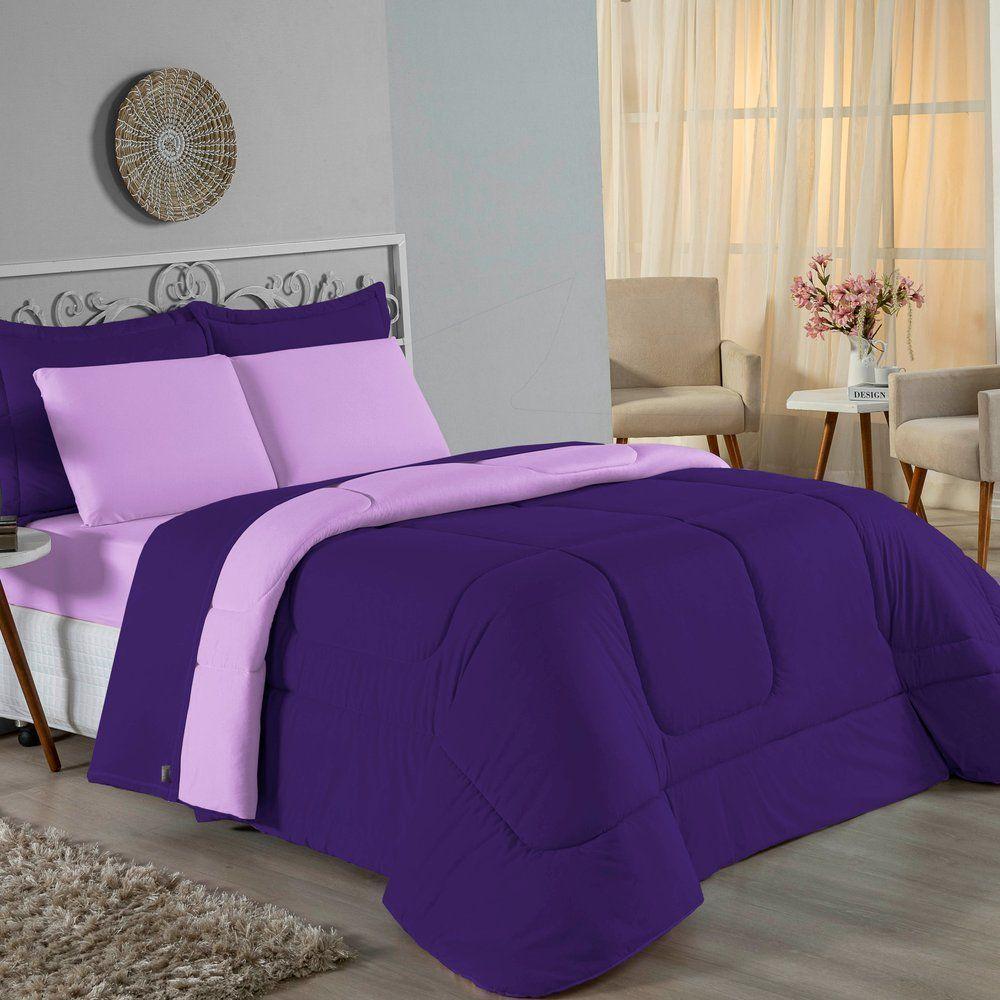Edredom Solteiro Nobre 1 Peça Dupla Face 1,60m X 2,40m Malha 100% Algodão - Roxo / Preto