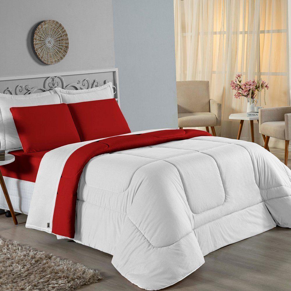 Edredom Solteiro Nobre 1 Peça Dupla Face 1,60m X 2,40m Malha 100% Algodão - Branco / Vermelho
