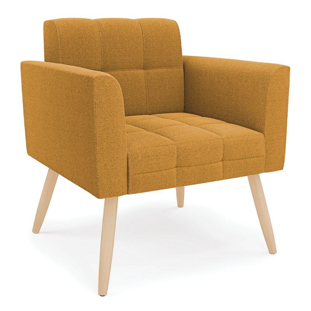 Poltrona Sala De Estar Pé Palito Natural Elisa Bouclê D03 - D?rossi Cor Mostarda