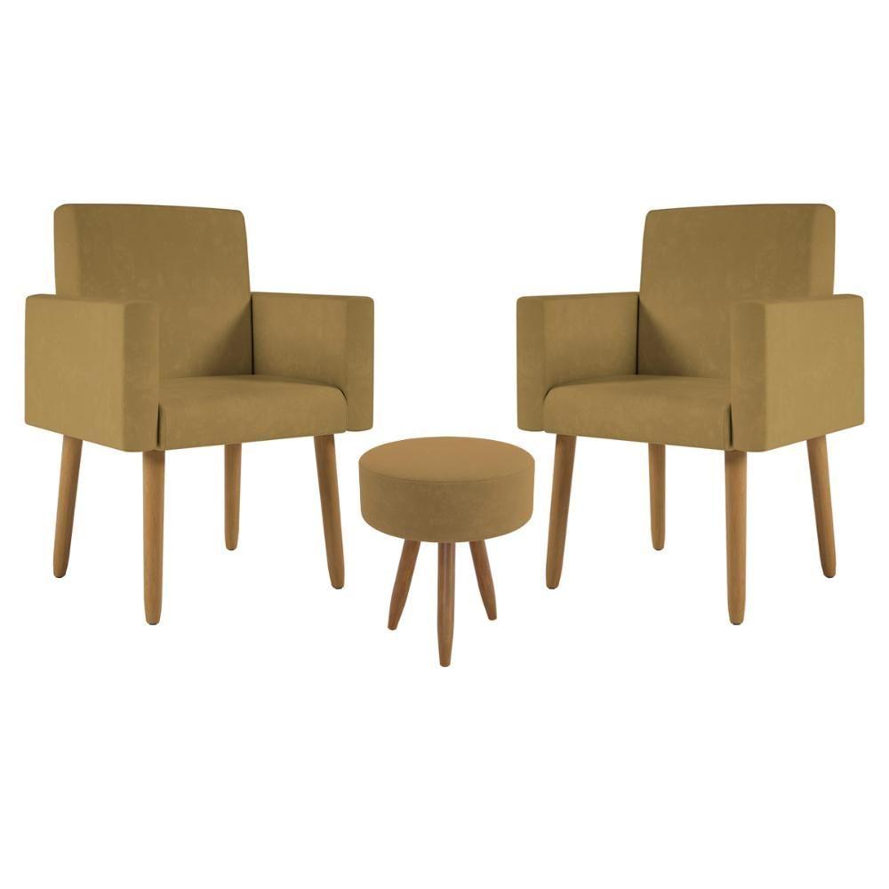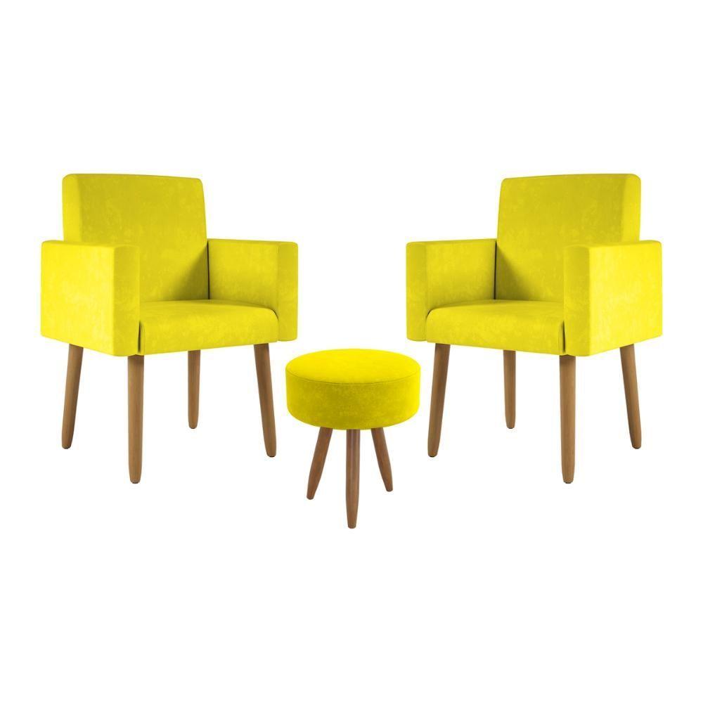 Kit 2 Poltronas Cadeira Recepção Nina Com Puff Balaqui Decor Amarelo