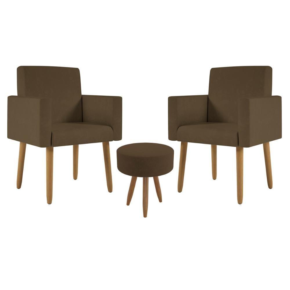 Kit 2 Poltronas Cadeira Recepção Nina Com Puff Balaqui Decor Marrom