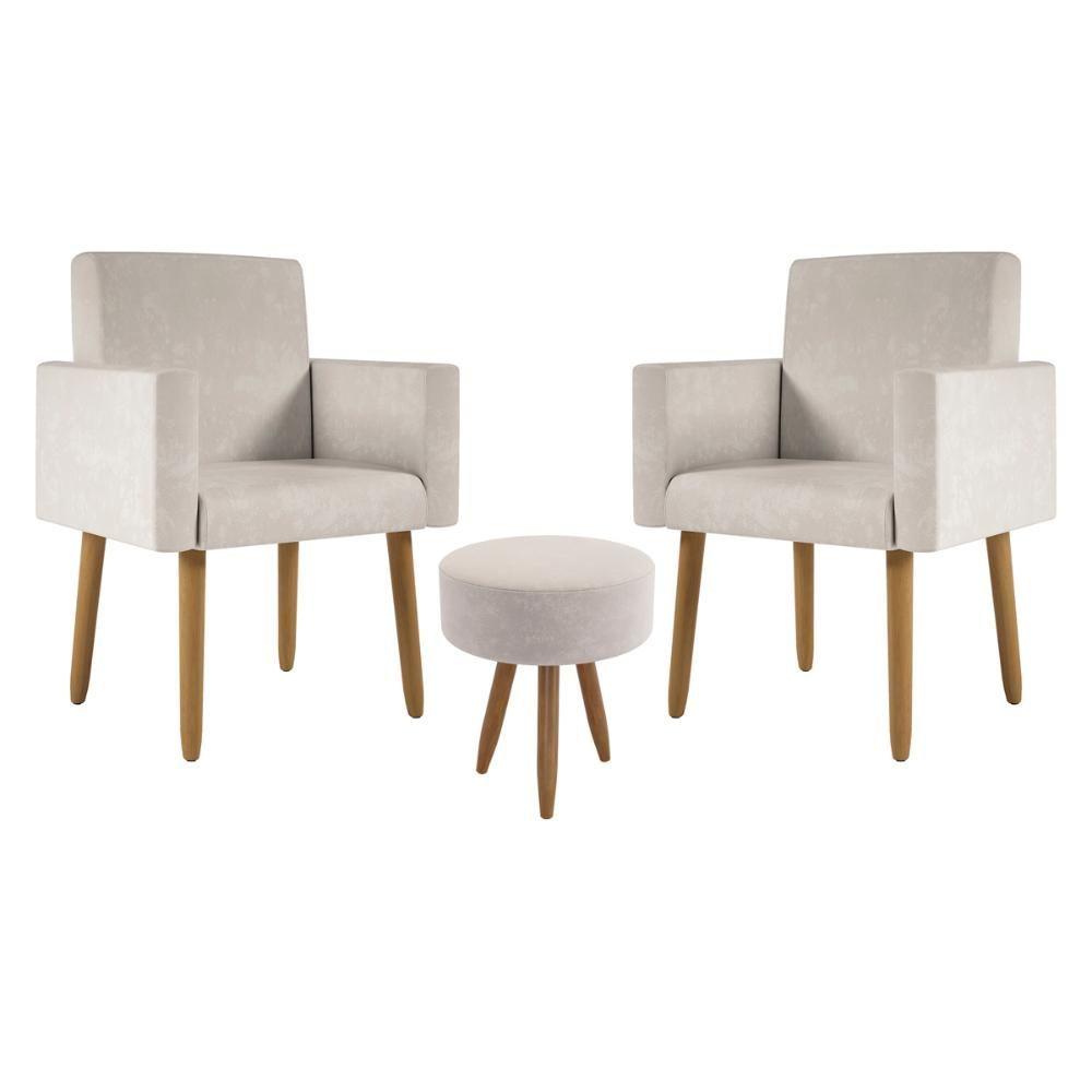 Kit 2 Poltronas Cadeira Recepção Nina Com Puff Balaqui Decor Bege