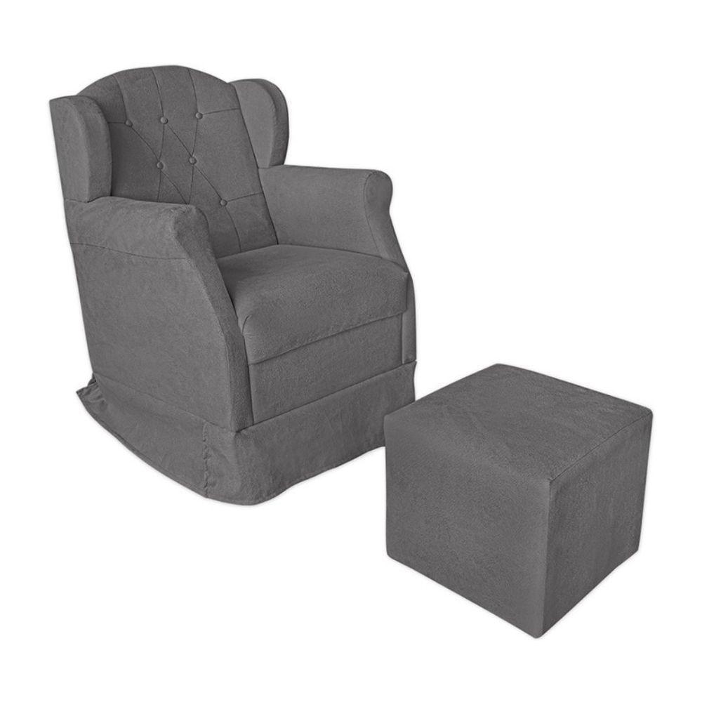 Poltrona Amamentação Com Balanço E Puff Luxo Suede Manuela Cor:cinza