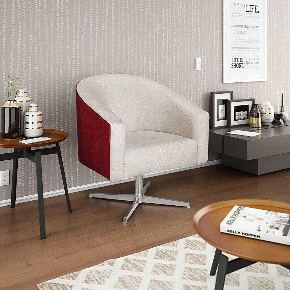 Poltrona De Amamentação Com Puff Cloe Pé Palito Bebê Veludo Bege