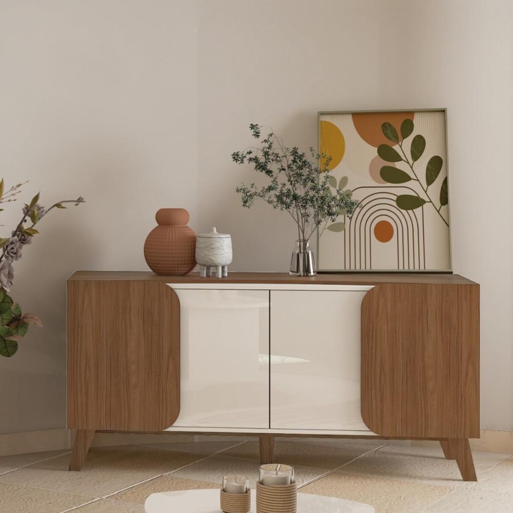 Rack Para Sala De Estar Tv 55 Pol Orgânico Picasso B02 Cinamomo Off White - Lyam Decor