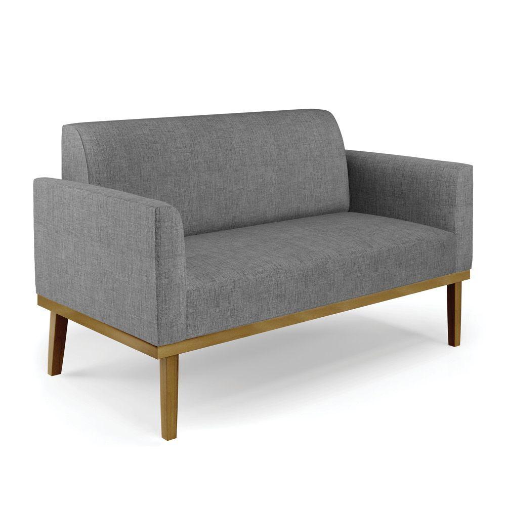 Sofá Namoradeira Base De Madeira Fixa Castanho Marisa Linho Grafite A26 D03 - D?rossi