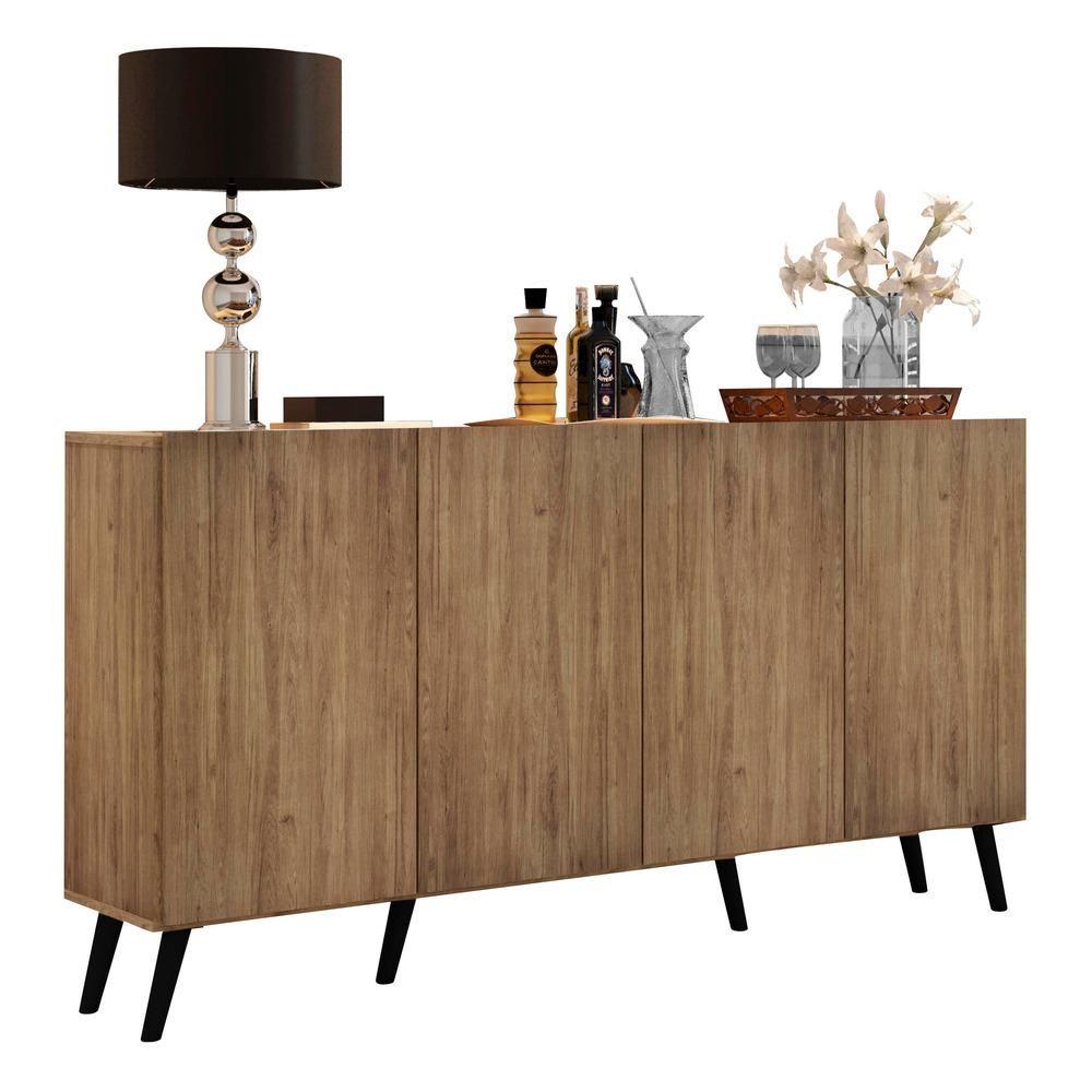 Aparador Buffet 4 Portas C/ Pés Retrô Rustic/Natural