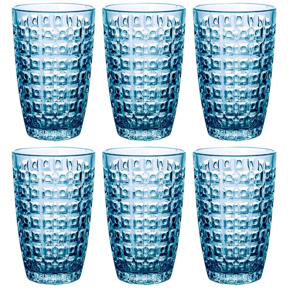 Conjunto de Copos L`Hermitage Fratello em Vidro Azul 355ml - 6 Peças