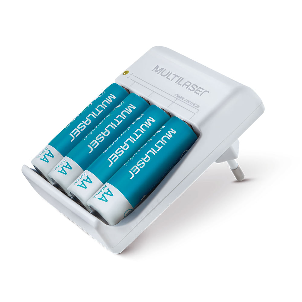 Carregador De Pilhas Multilaser Aa/Aaa + 4 Pilhas Aa 2500Mah - CB054