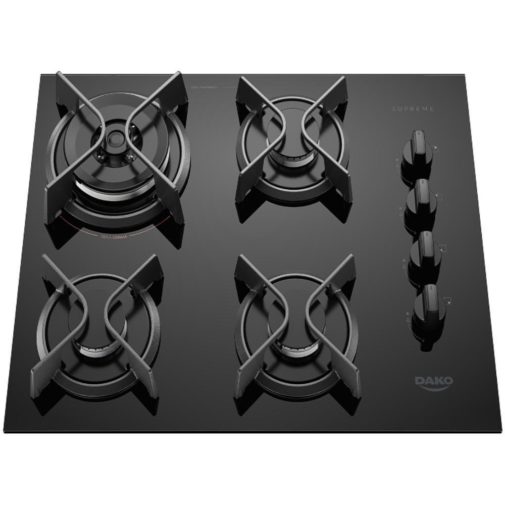 Cooktop 4 Bocas Dako Supreme Meas Vidro Preto A Gás Bivolt Bivolt