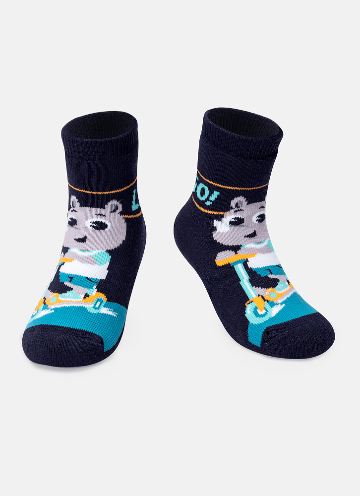 Meia Menino Sapatilha com Antiderrapante e Aplique Urso