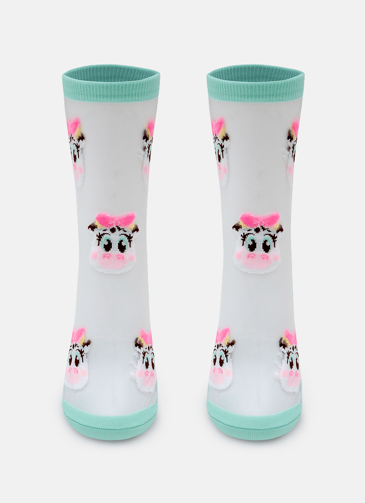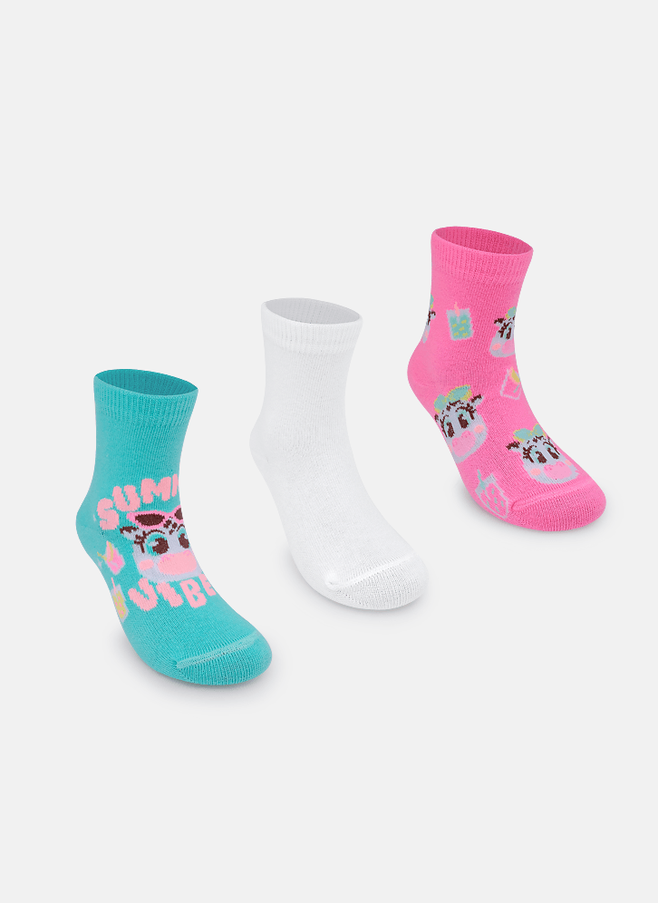 Kit com 3 Meias Soquete Bebê Menina Vaca Summer