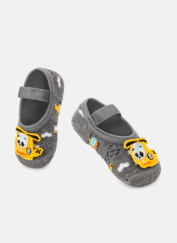 Meia Menina Sapatilha com Antiderrapante e Aplique