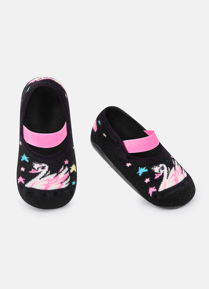 Meia Menina Sapatilha com sola emborrachada Cisne Rainbow