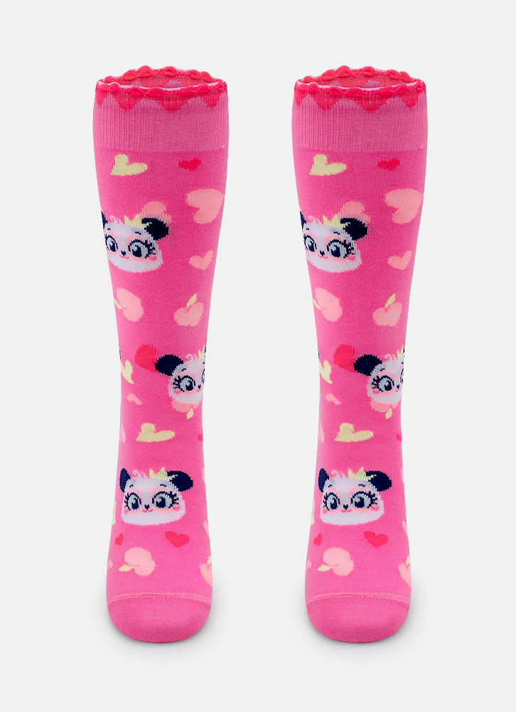 Meia Cano 3/4 Menina Panda Romântico