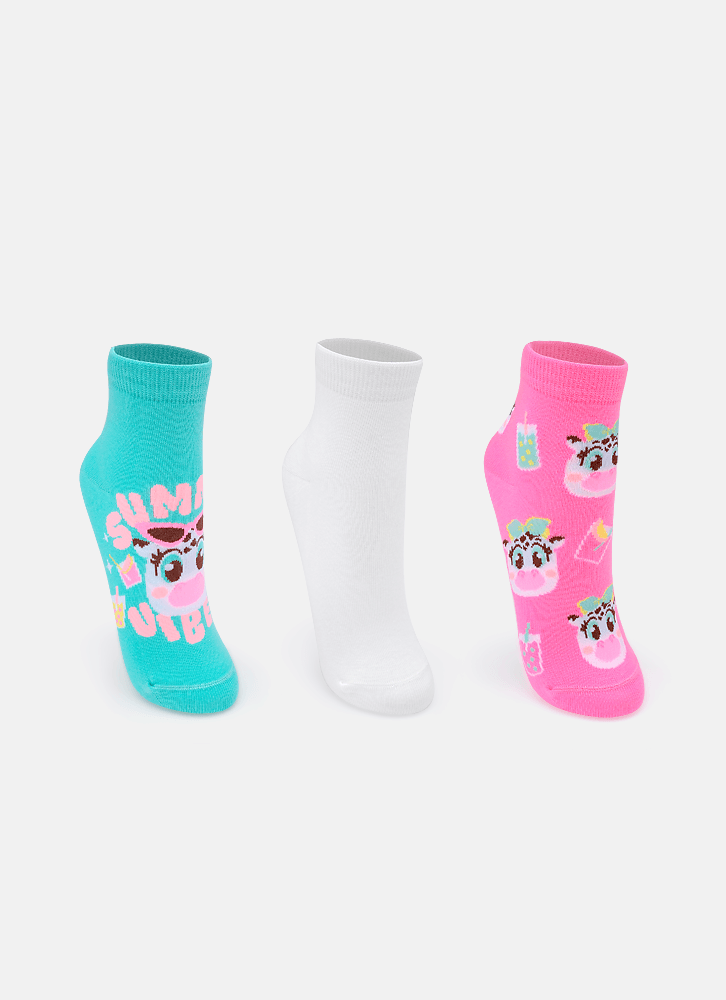 Kit com 3 Meias Soquete Feminina Vaca Summer