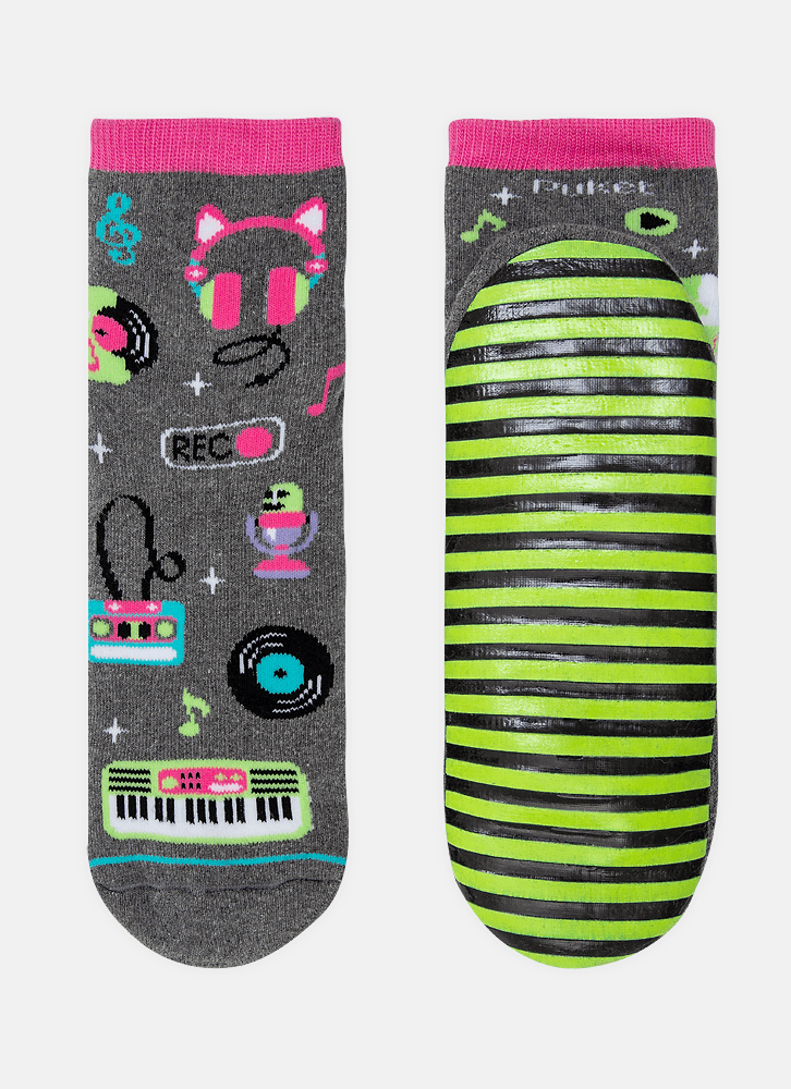 Meia Soquete Cano Médio com Sola Emborrachada Menina Music