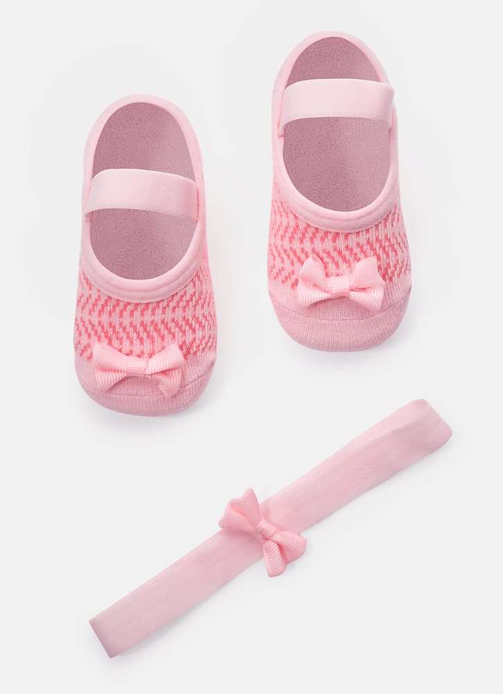 Kit Faixa de Cabelo e Meia Sapatilha Bebê Menina Rosa