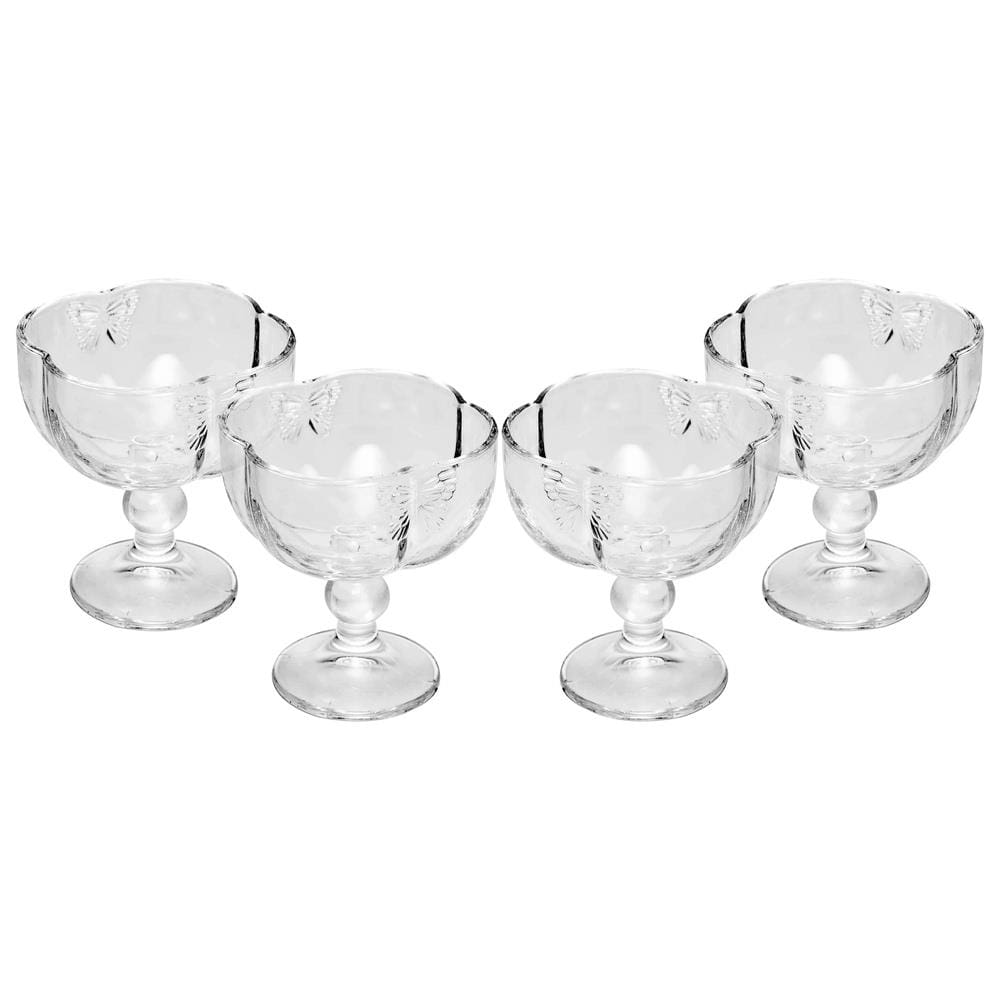 Conjunto 4 Taças para Sobremesa Wolff Butterfly 200ml Vidro Incolor com Relevo Elegante