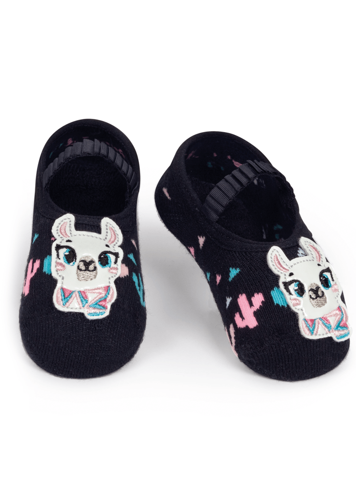 Meia Menina Sapatilha com Antiderrapante e Aplique Lhama