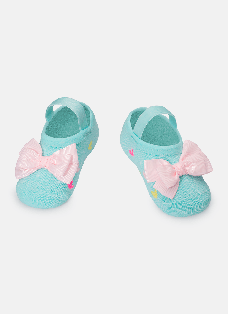 Meia Sapatilha Antiderrapante com Laço Bebê Corações