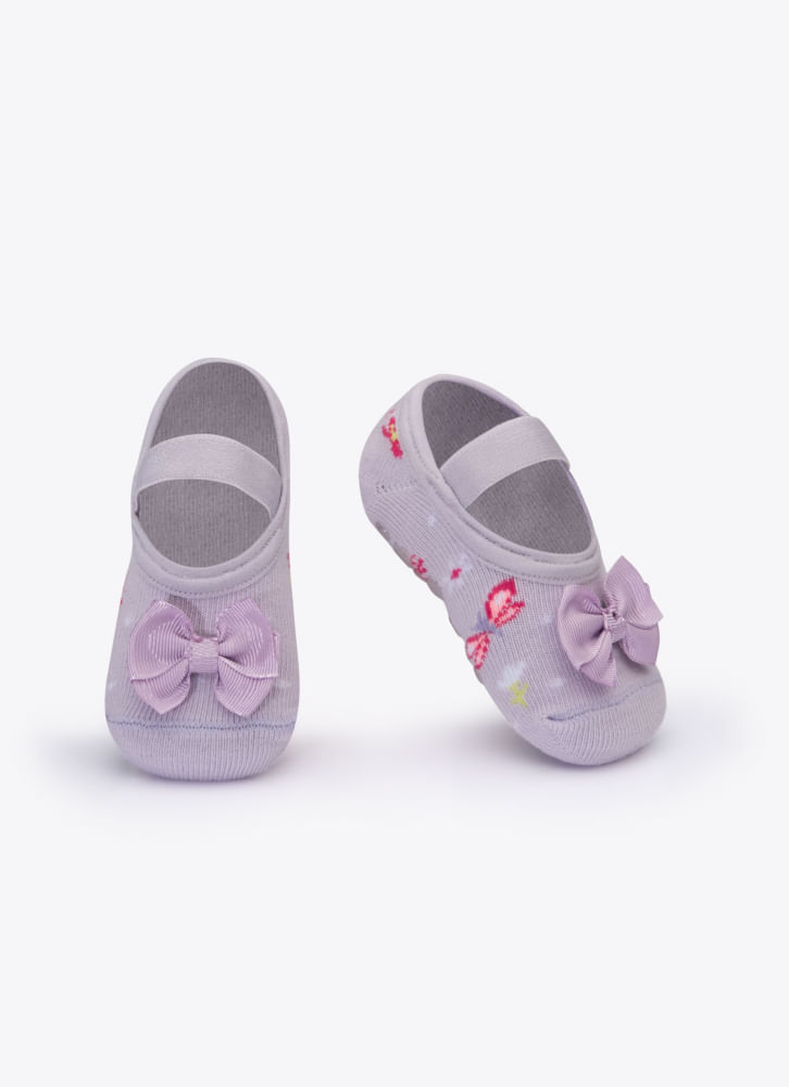 Meia Sapatilha com Laço Bebê Lilás