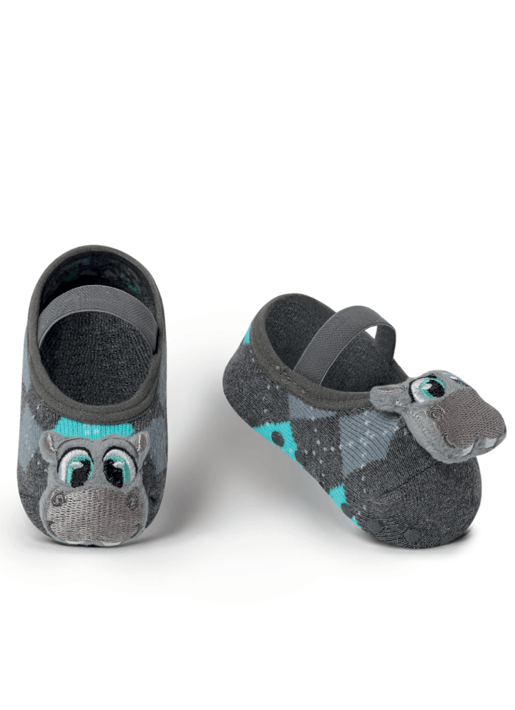Meia Menino Sapatilha com Antiderrapante e Aplique Hipopótamo
