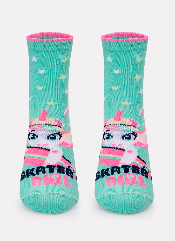 Meia Soquete Cano Médio Infantil Unicórnio Skate