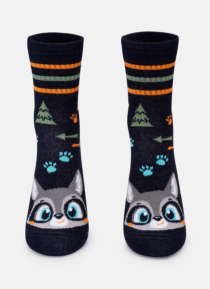 Meia Soquete Cano Médio Infantil Família Guaxinim