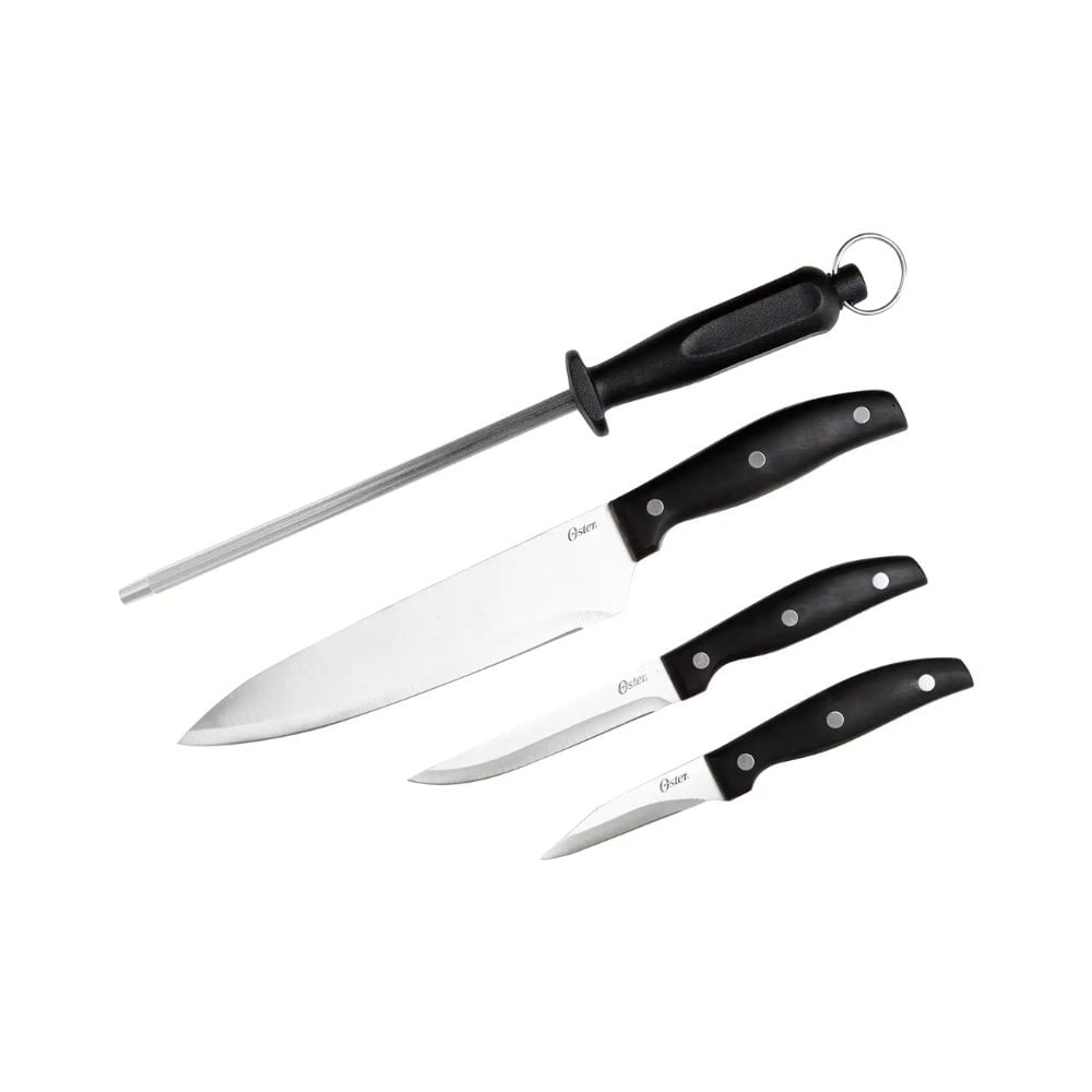 Jogo de Facas e Chaira para Churrasco Inox Oster 4 Peças