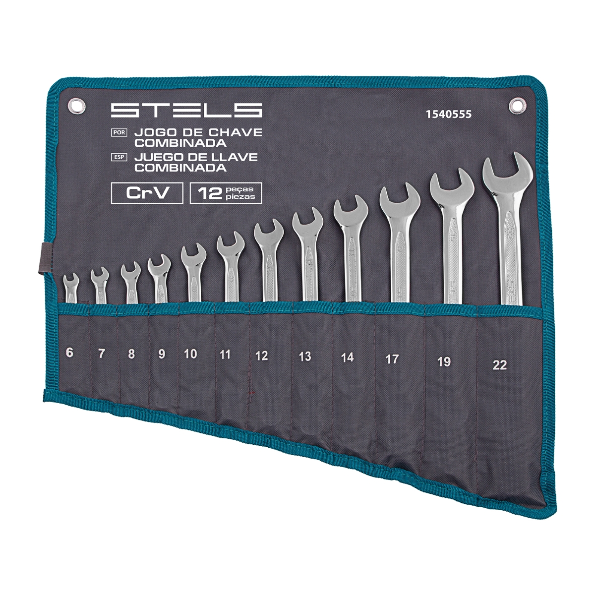 Jogo de Chave Combinada Cromo Vanádio 6-22mm 12 Peças Stels Alta Resistência