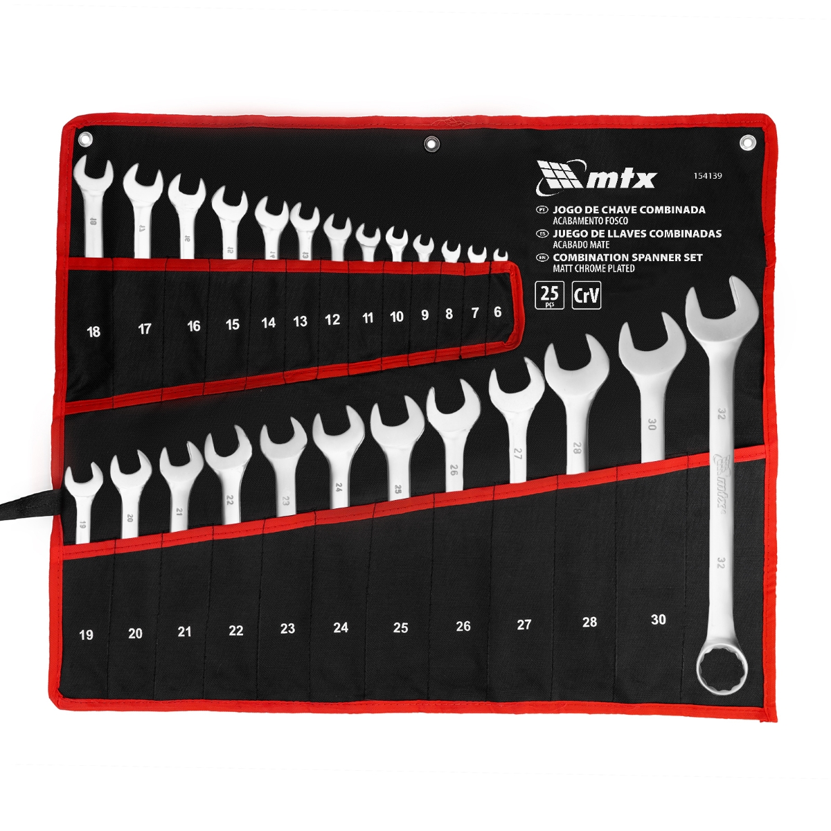 Jogo de Chave Combinada Cromado Vanádio 6-32mm 25 Peças MTX 154139