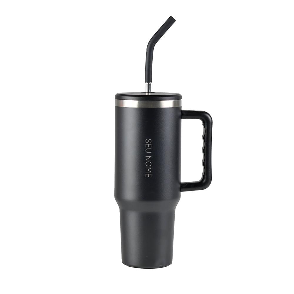 Kit Copo Térmico 350ml + Garrafa Térmica 500ml Moderno Preto