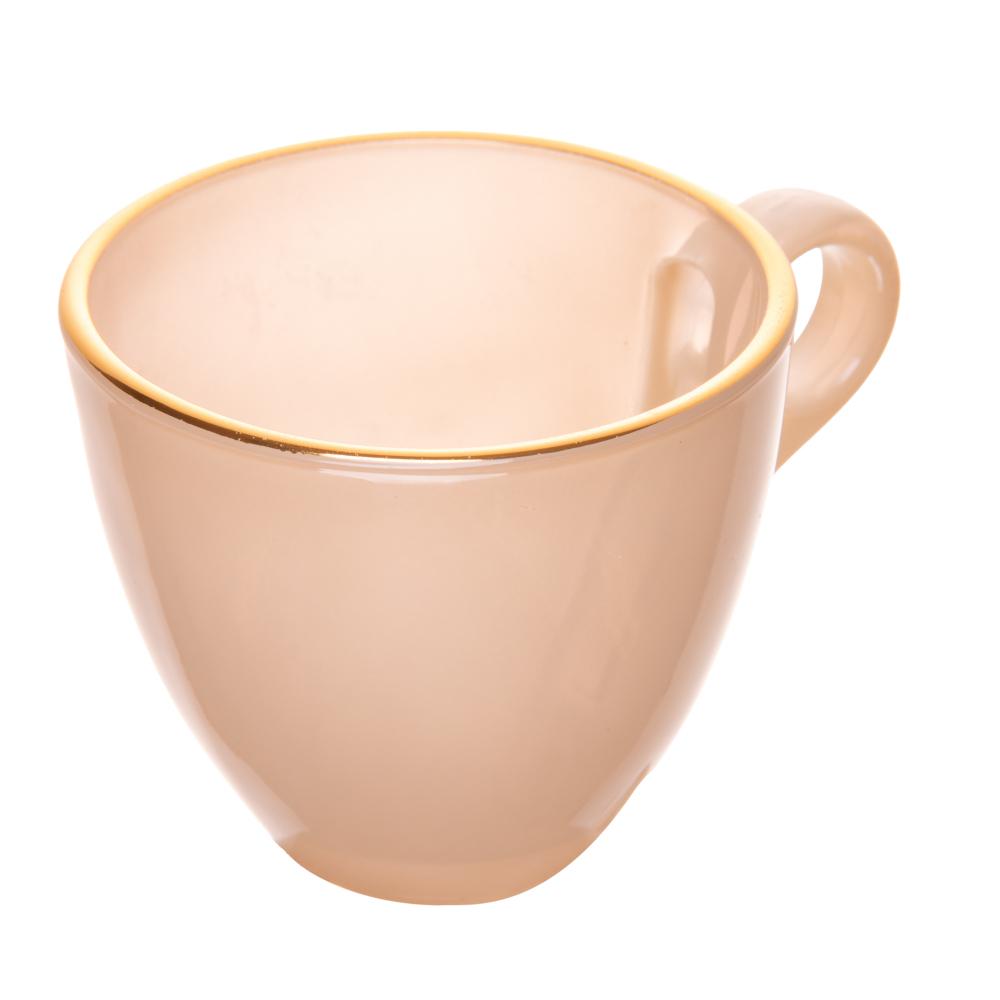 4 Xícaras Chá com Pires Milky Fio de Ouro 170ml Areia Vidro